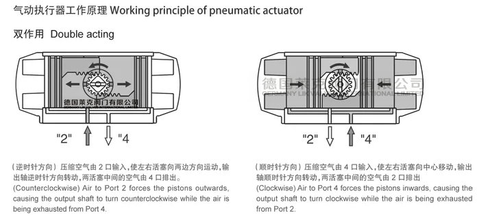 德國萊克雙作用氣動球閥球體是由旋塞閥轉(zhuǎn)變而來的,它的球心為旋轉(zhuǎn)90°的動作,球體繞閥體中心線作旋轉(zhuǎn)來達到開啟,有圓形通孔或通道通過其軸線。當(dāng)球心旋轉(zhuǎn)到90°時閥門處于緊閉狀態(tài),當(dāng)執(zhí)行器工作時,只需很小的轉(zhuǎn)動力矩就能將閥門關(guān)緊嚴密,從而可達到快速截斷切斷的原理。