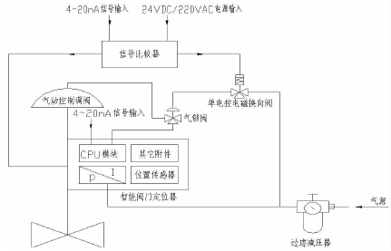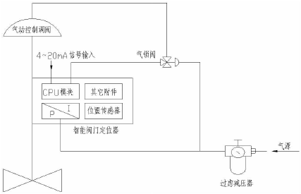 如圖1所示,本方案主要由氣動控制閥、智能閥門定位器、氣鎖閥和空氣過濾減壓器等組成。
